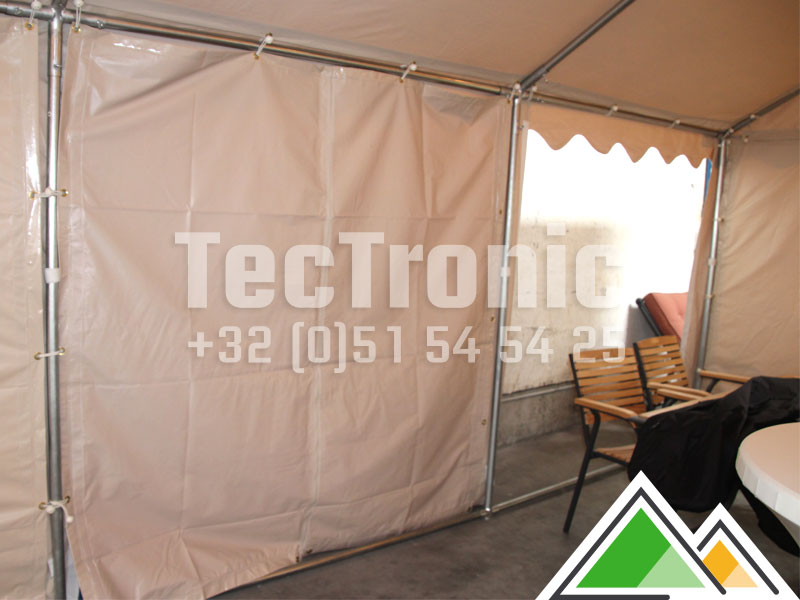 Avantage supplémentaire: une paroi latérale avec une fermeture à glissière est plus forte qu’une paroi latérale avec fenêtre. Le PVC utilisé pour une paroi latérale opaque est en effet plus lourd / plus épais que le PVC transparent d'une fenêtre.