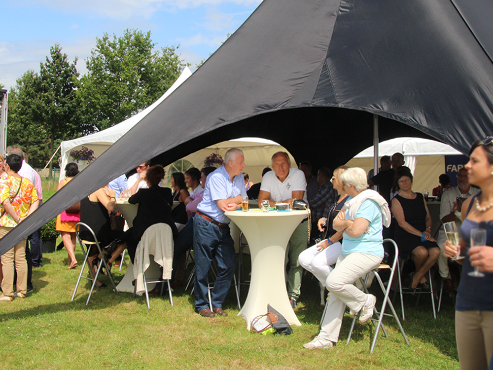 Tente étoile professionnelle en PVC dans la taille de 10 m. Sans doute l’accroche de chaque événement ou fête. La design trendy et élégante n’échappera personne !